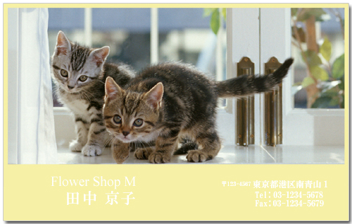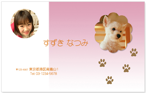 今では、名刺の使い方のイメージも変わってきました。たとえば、コミにケーションツールのひとつとして、 お友達とのパーティ招待状に レシピカードとしてお友達にメッセージを書いたり、 またペットの自己紹介カードとして、 いろいろと使い方をアレンジして、 コミニケーションツール のようなイメージで使っています。